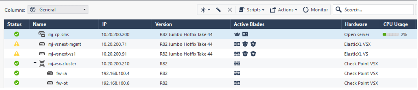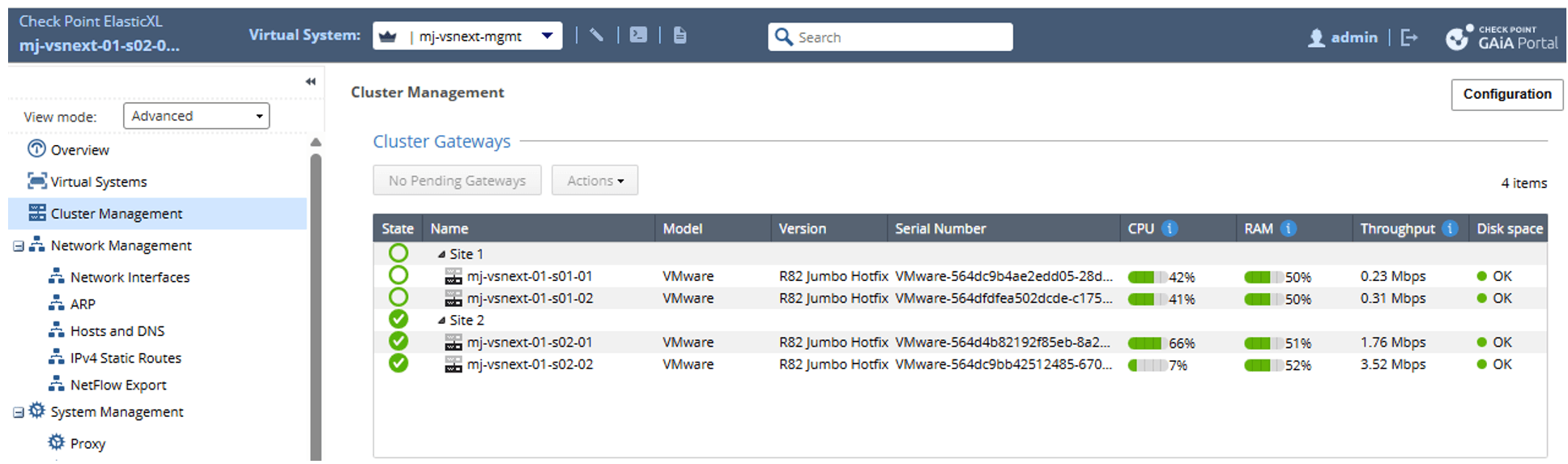 VSNext baut auf ElasticXL, die neue Check Point Cluster Technologie, auf und folgt konzeptionell dem Maestro-Ansatz. Dadurch verhält sich die Plattform aus Management-Sicht ähnlich wie eine Maestro-Umgebung: Konfiguration, Betrieb und Monitoring erfolgen zentral über die Plattform, unter anderem mithilfe von der Global Clish (gclish).